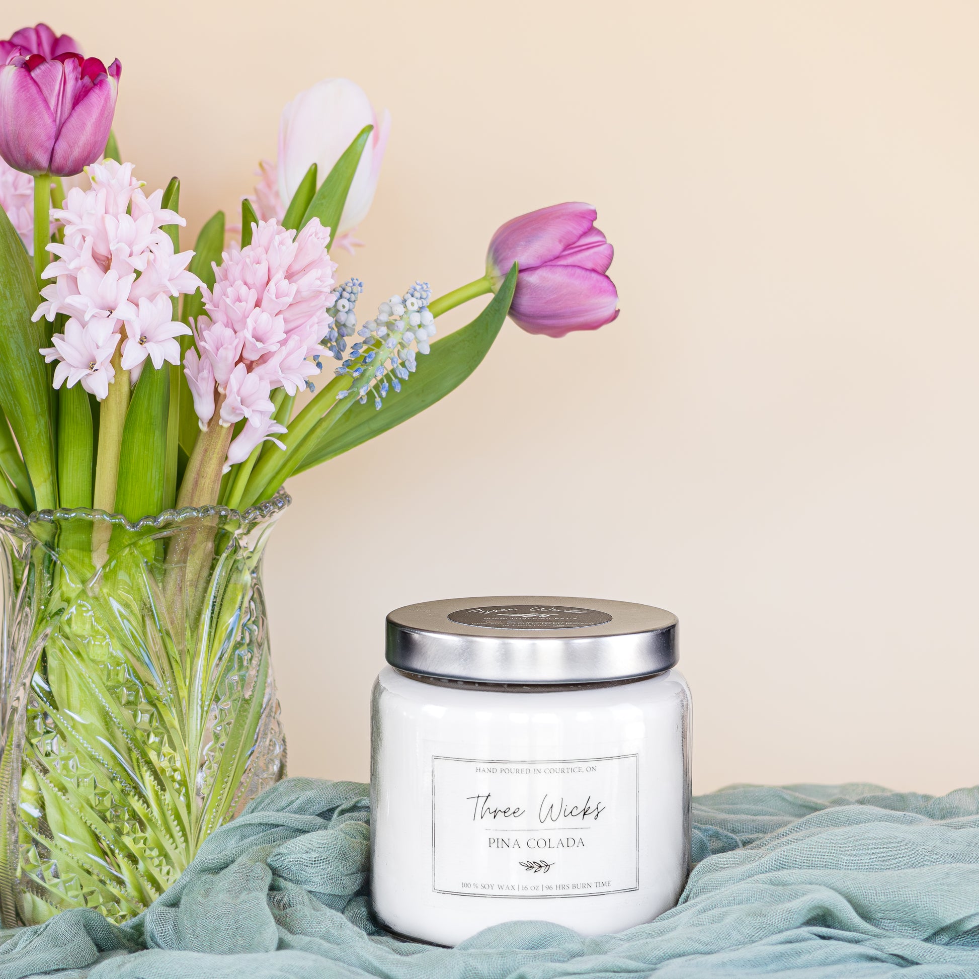 Our 16 oz traditional glass jar, topped with a timeless lid, fills your space with delightful spring fragrances while adding an elegant touch to any table or shelf. Its wide opening is ideal for scenting larger rooms. Enjoy up to 96 hours of clean, even burning from each hand-poured candle made with 100% organic soy wax, free from added colors. All fragrances are paraben- and phthalate-free, paired with premium lead-free wicks. Plus, the jars are fully recyclable and reusable. Contact us to discover our convenient refill program.